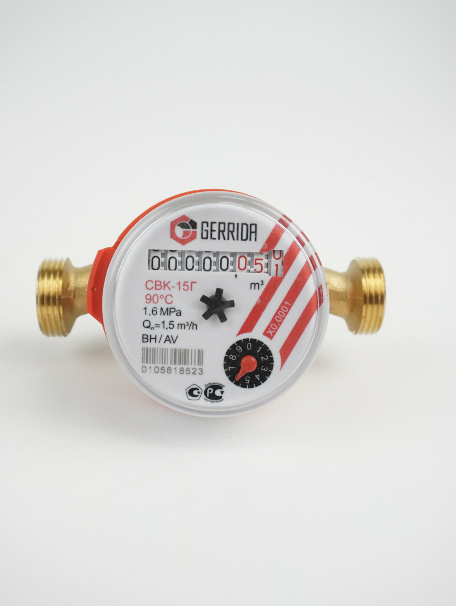 Счетчик учета воды Gerrida СВК-15 Казань без монтажного комплекта /счетчик для холодной и горячей воды / универсальный