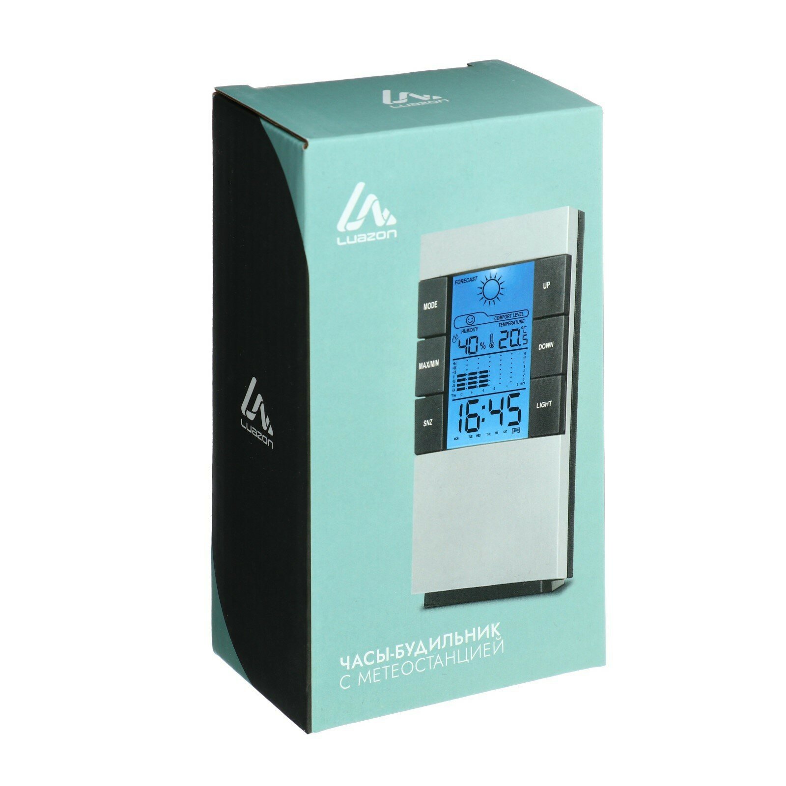 Будильник Luazon Home Метеостанция, подсветка, серая