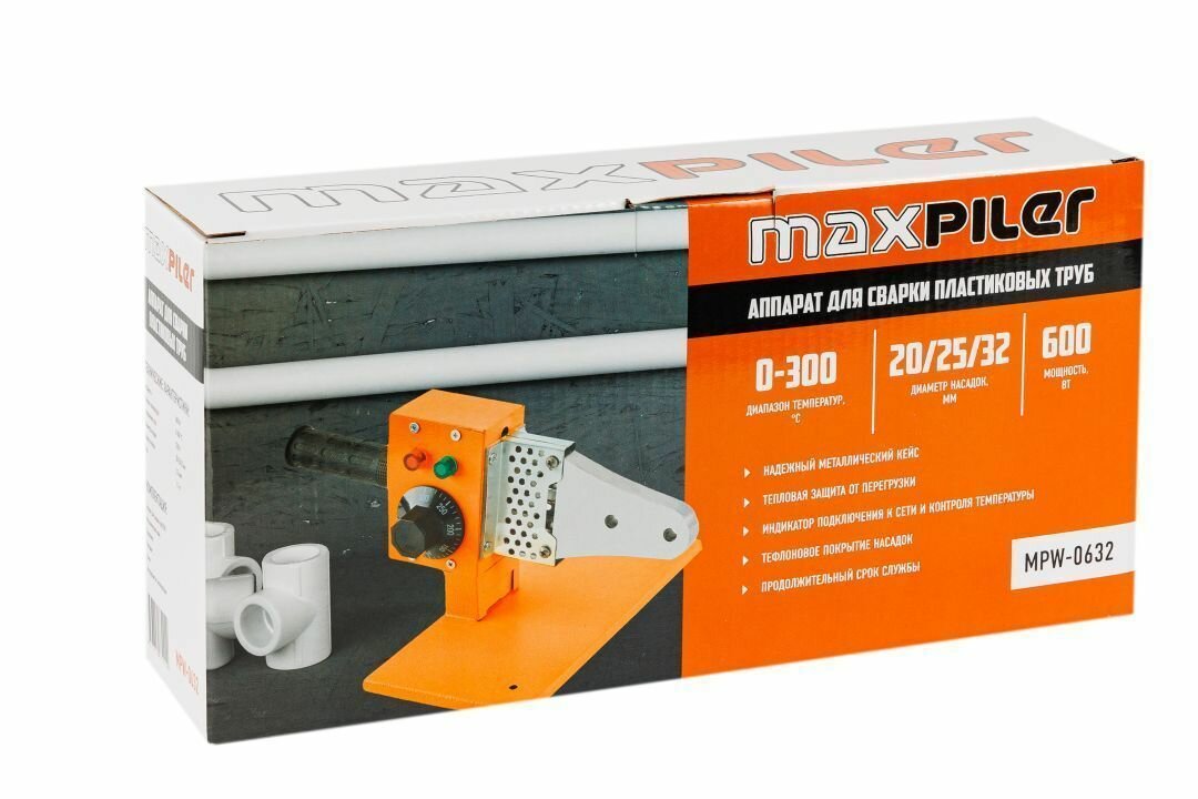 Аппарат для сварки пластиковых труб MaxPiler MPW-0632 в кейсе, 600Вт, 3 насадки