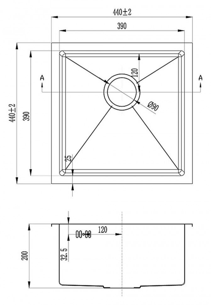 Мойка для кухни врезная Zorg RX-4444 из нержавеющей стали, 440 x 440 мм