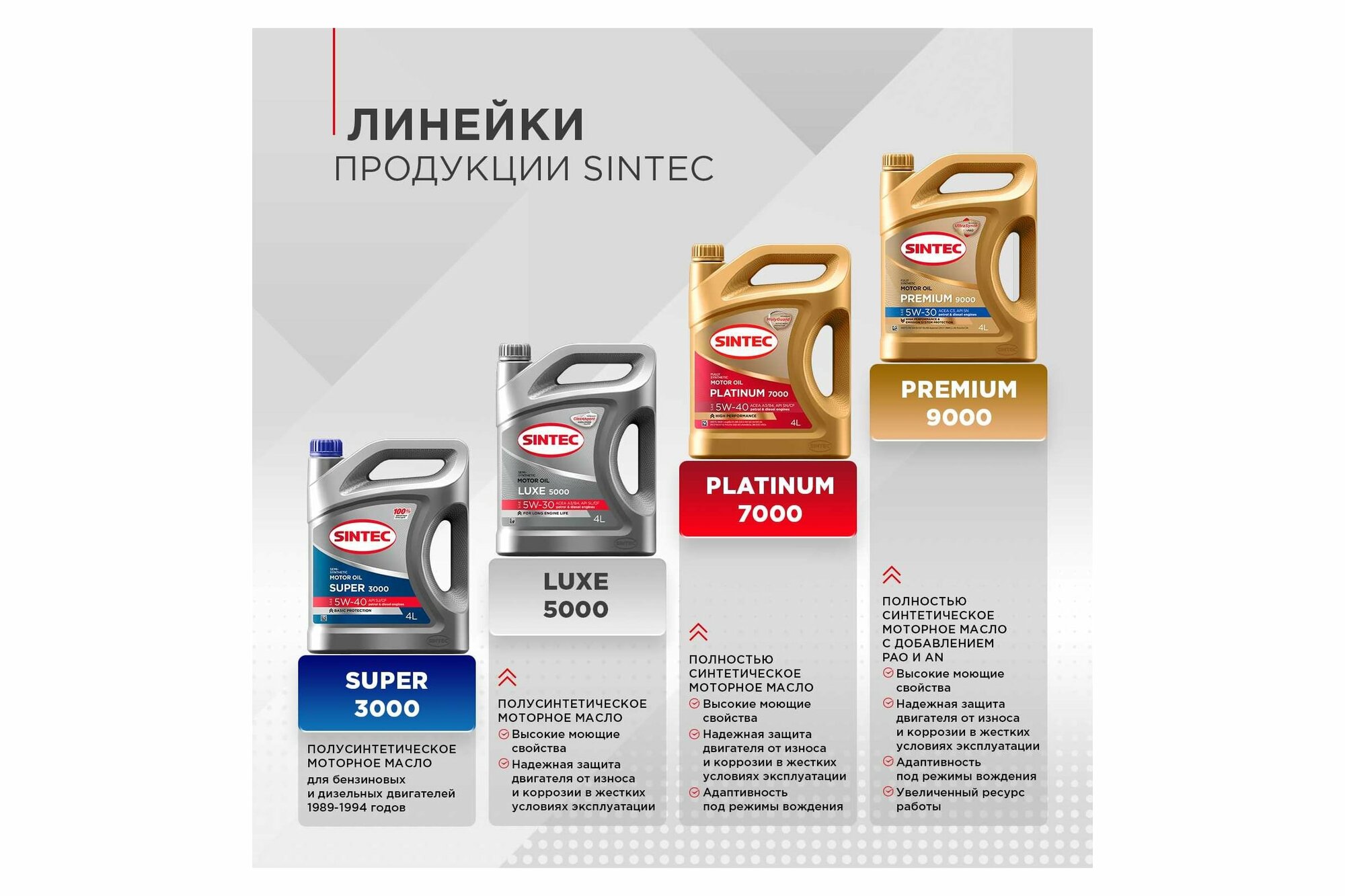 | Отзыв: | Пользуюсь обычно для своего движка моторным маслом Sintec Super 10W-40. Масло качественное. Удобно что продаётся в канистрах разных объёмов. Я обычно беру небольшую литровую ёмкость на долив, хотя горит масло в использовании мало. За год буквально стакан только доливал. Литра хватит надолго. |