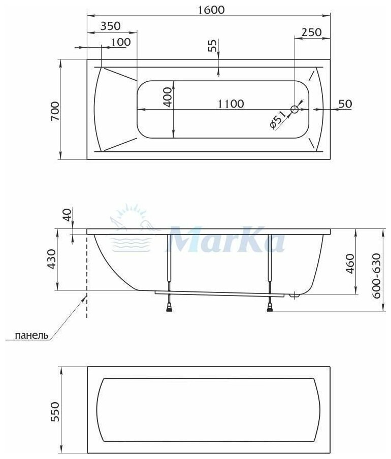Купить Ванна 1Marka MODERN 160x70 (каркас в комплект не входит)