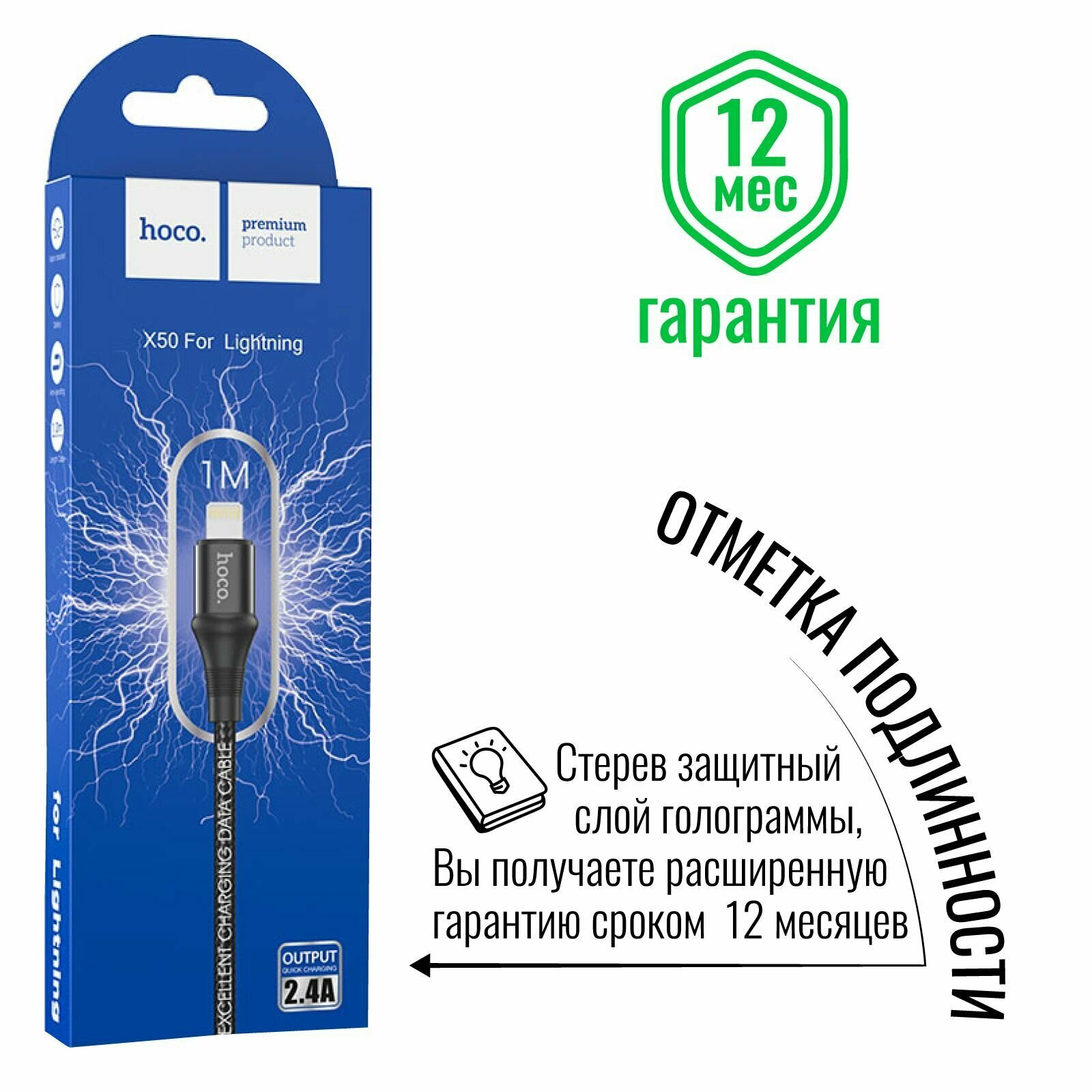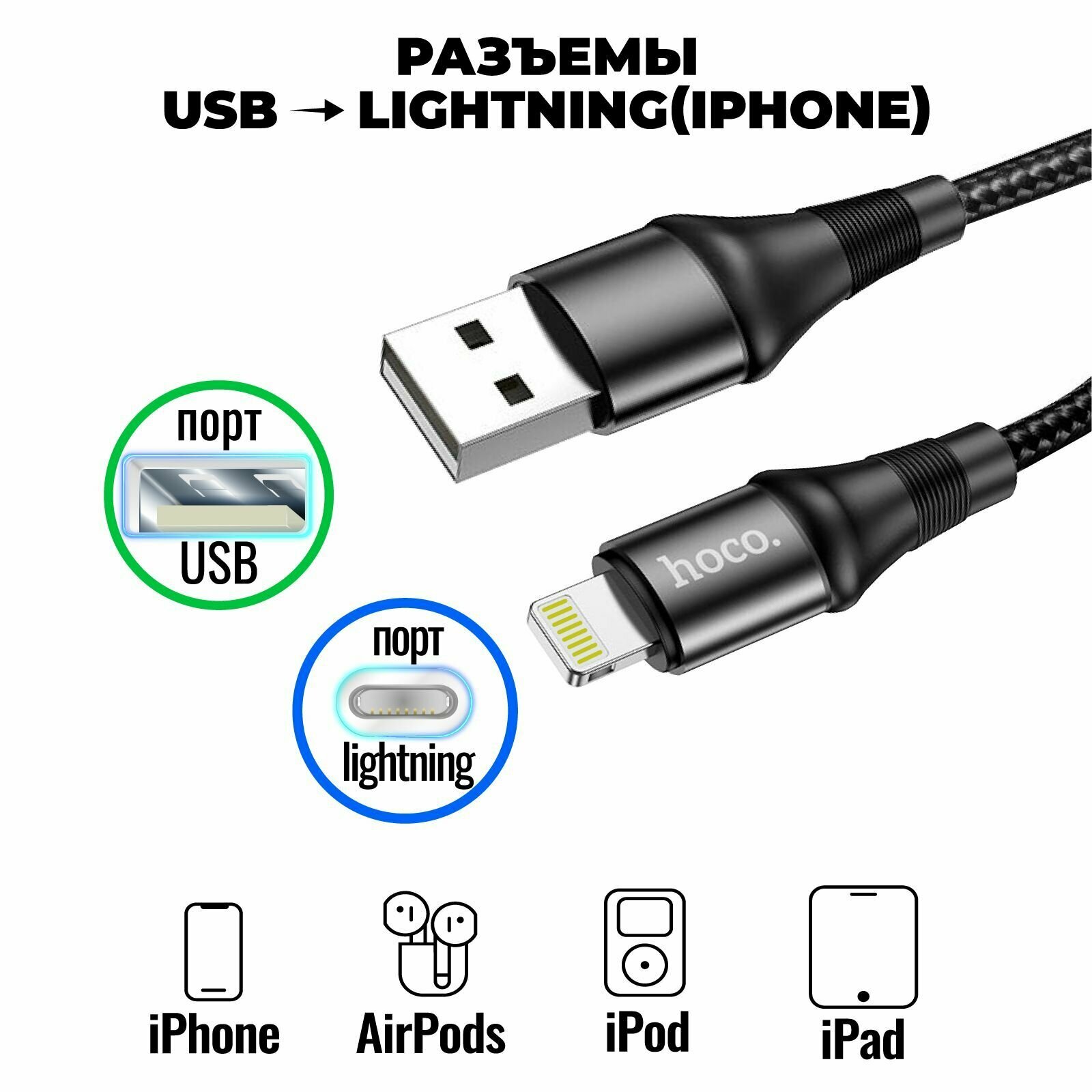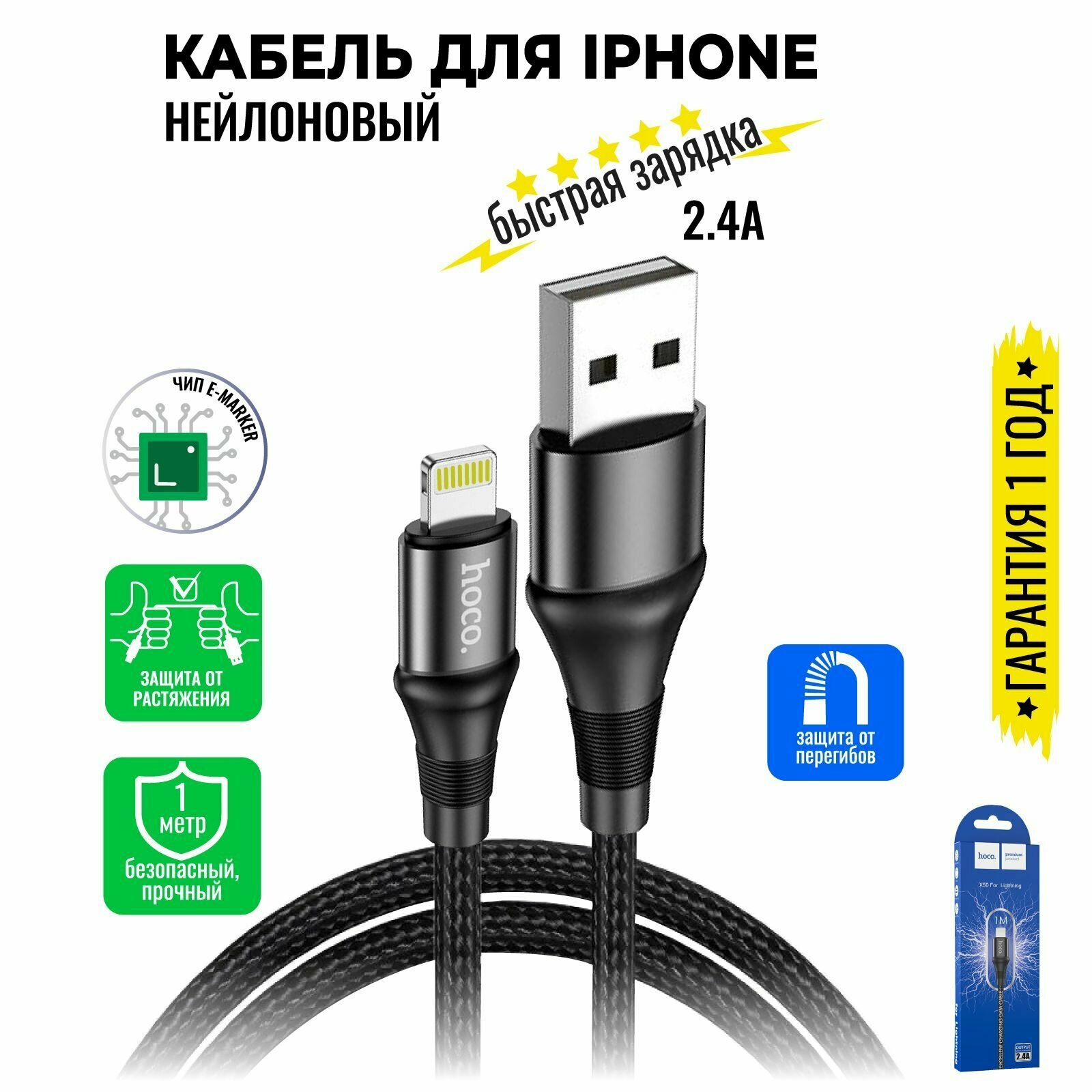 Кабель для iPhone, быстрая зарядка, 1 метр, нейлоновый, передача данных / USB провод для iPad airPods / шнур для разъема Lightning / Hoco. X50 интересное: