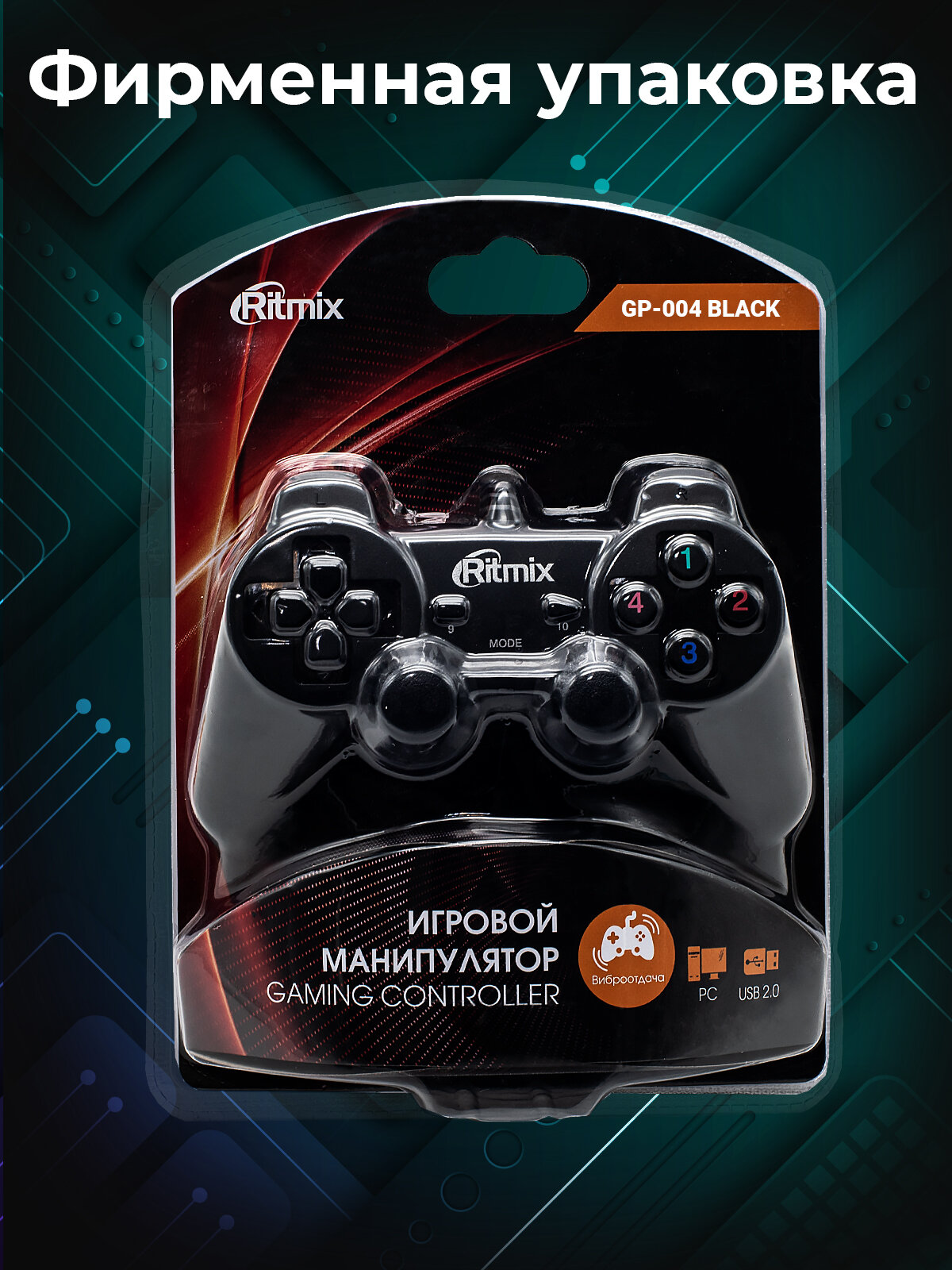 Геймпад Ritmix GP-004, 16 кнопок , usb , чёрный