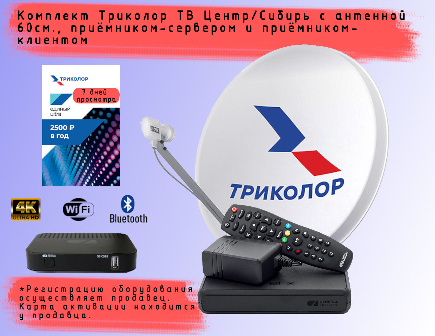 Комплект спутникового телевидения Триколор на 2 телевизора-Мультирум GS B523L+C592+7 дней просмотра (Центр, Единый Ультра HD, 2500 руб./год) интересное: