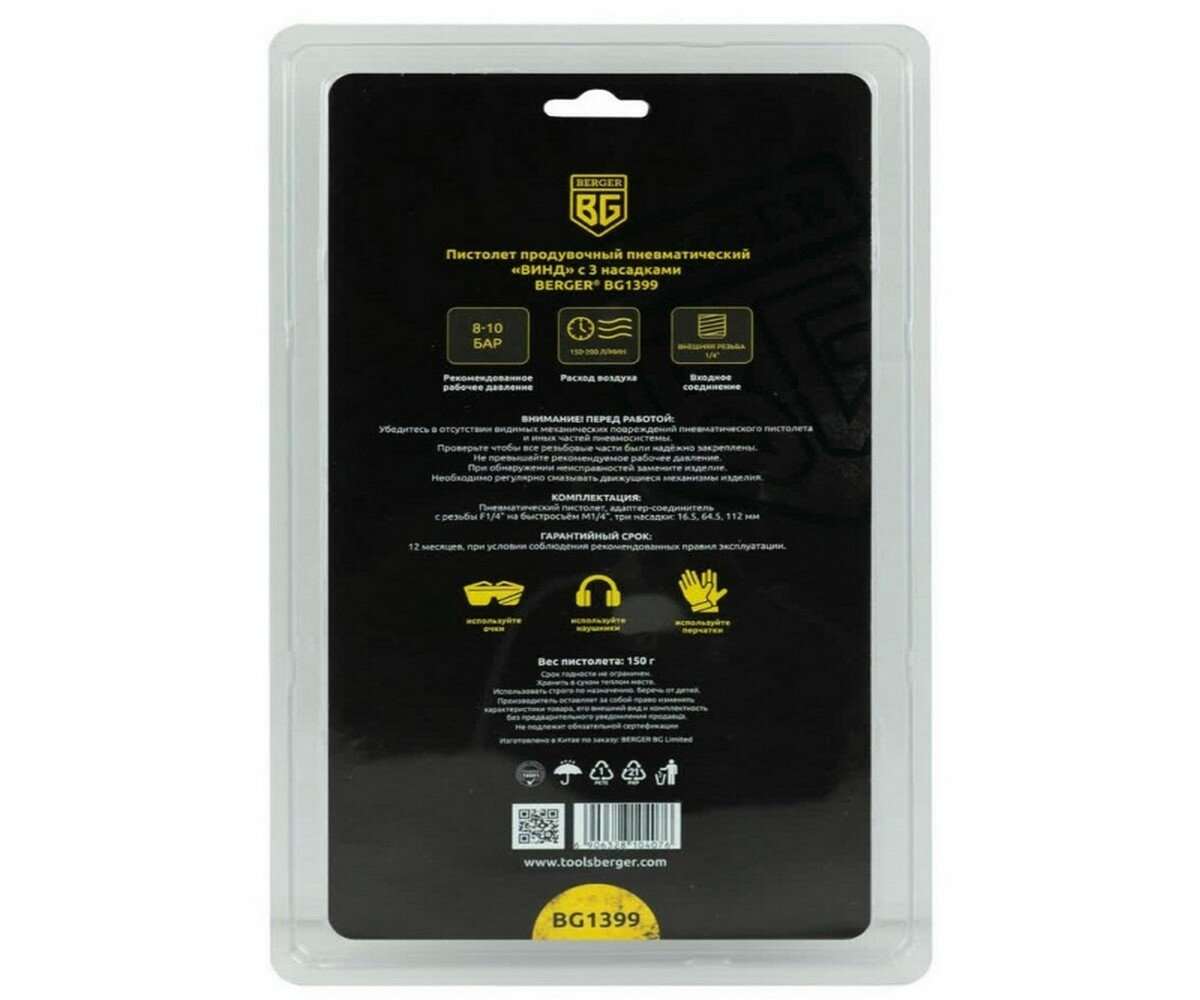 Berger BG Пистолет продувочный пневматический винд с 3 насадками BG1399 интересное: