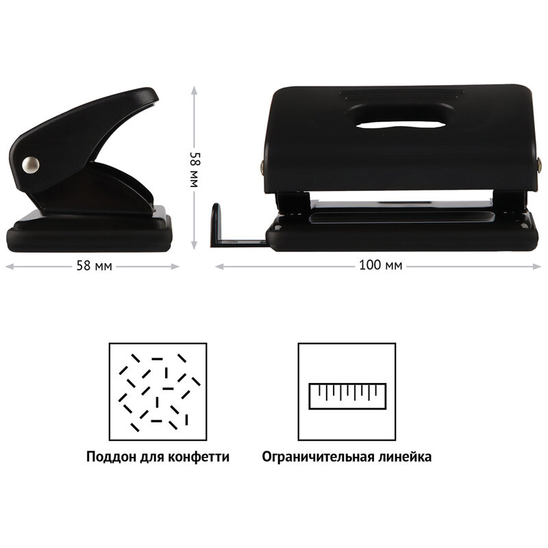 Купить Дырокол 10 л., пластиковый, черный, с линейкой