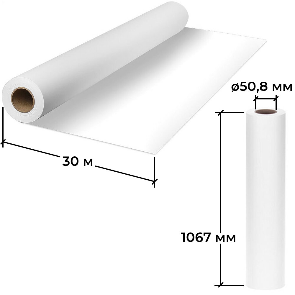 Бумага Cactus 1067мм х 30м, втулка 50.8мм (2"), 120г/м2, универсальная (с покрытием), белый, покрытие матовое [cs-pc120-106730]