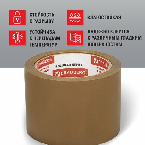 Клейкая лента упаковочная Brauberg 72 мм х 66 м, 45 мкм, коричневая