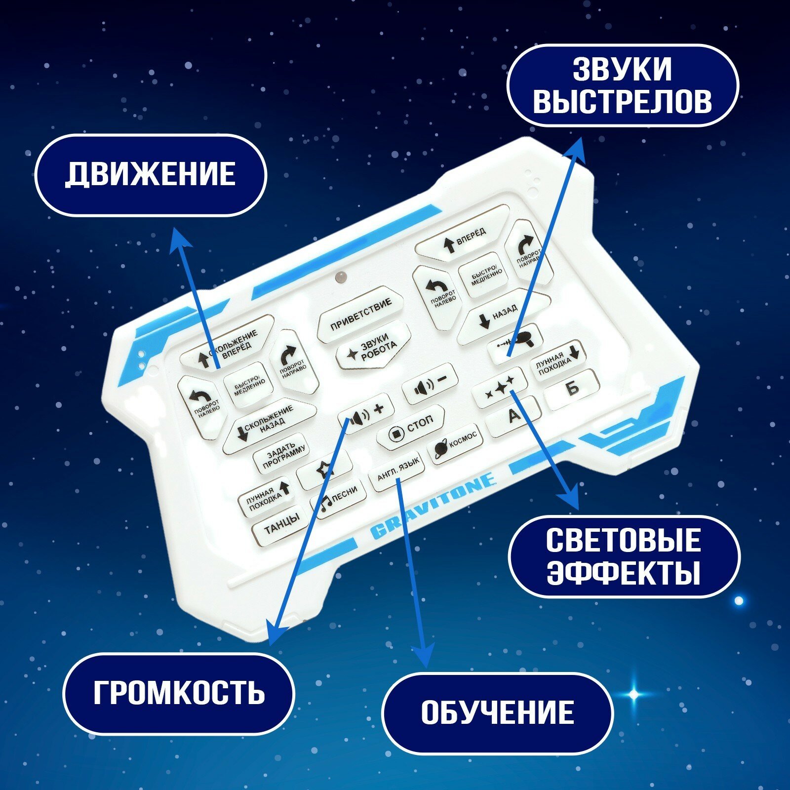 | Особенности | говорит / поет / программируемая игрушка / пульт ДУ в комплекте / радиоуправление / ходит/ездит |