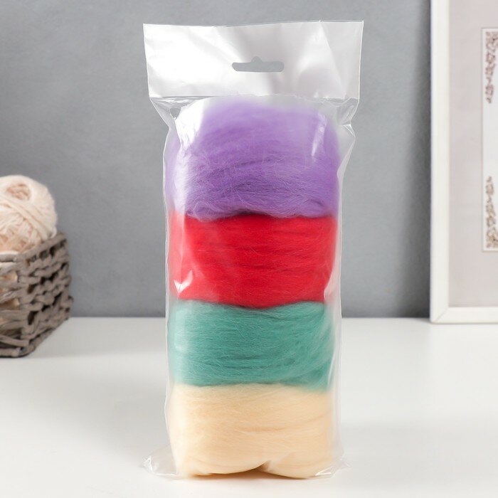 Набор шерсти для валяния 100% полутонкая овечья шерсть 4х10г ассорти №8 AFW-040-08