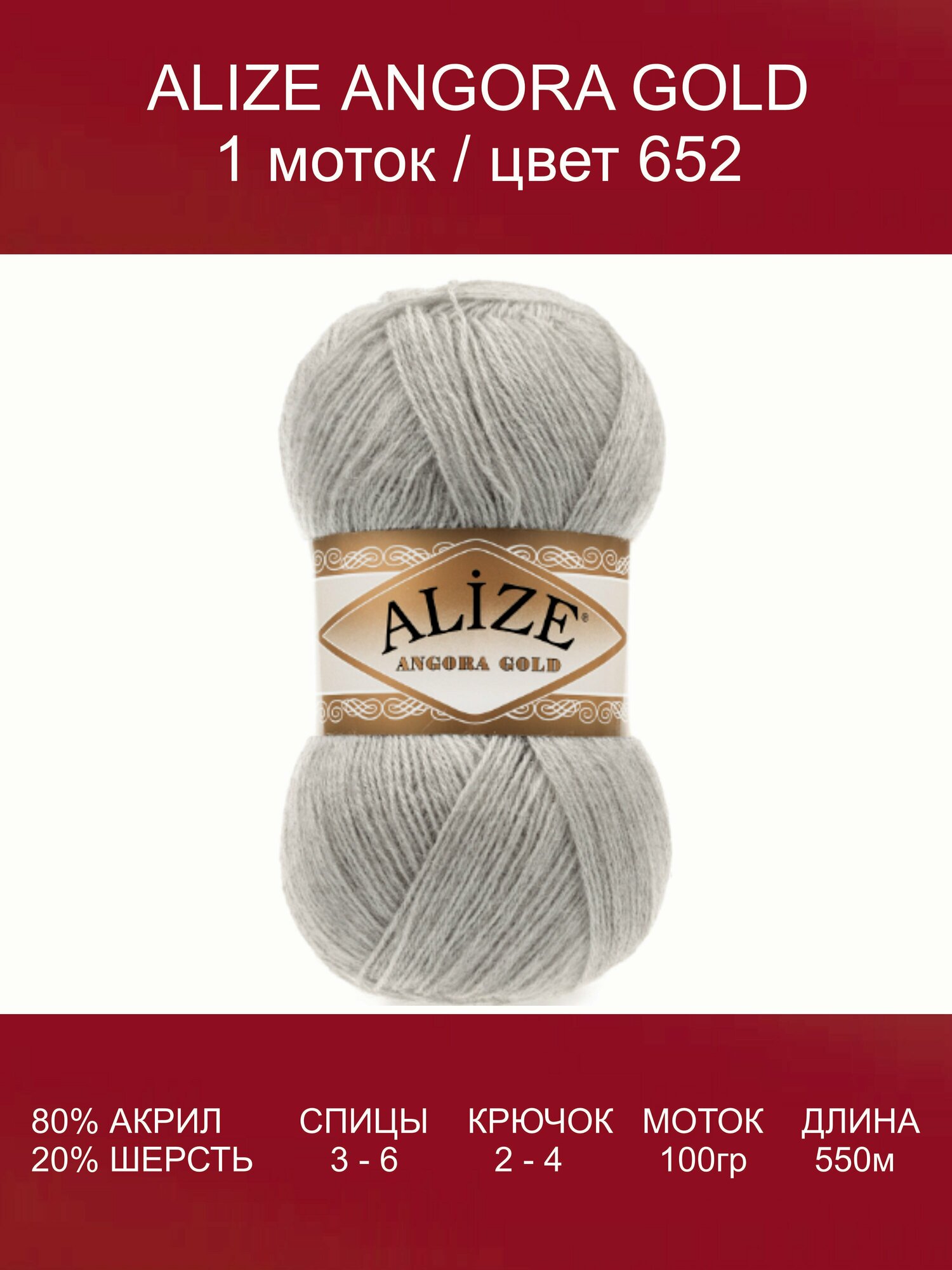 Пряжа Alize Angora Gold | Турция | 5шт упаковка | Акрил: 80%, Шерсть: 20%