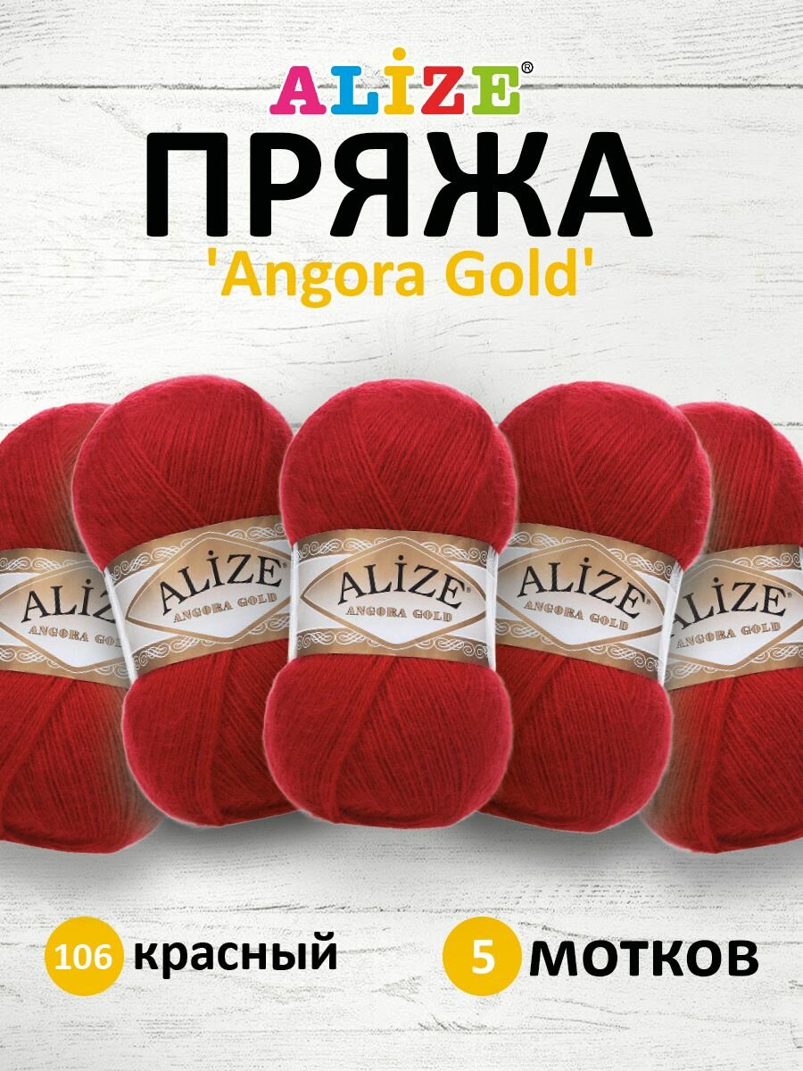 Купить Пряжа для вязания ALIZE Angora Gold Ализе Ангора Голд: 106 (красный), 5 шт 550 м 100 г, 20% шерсть, 80% акрил