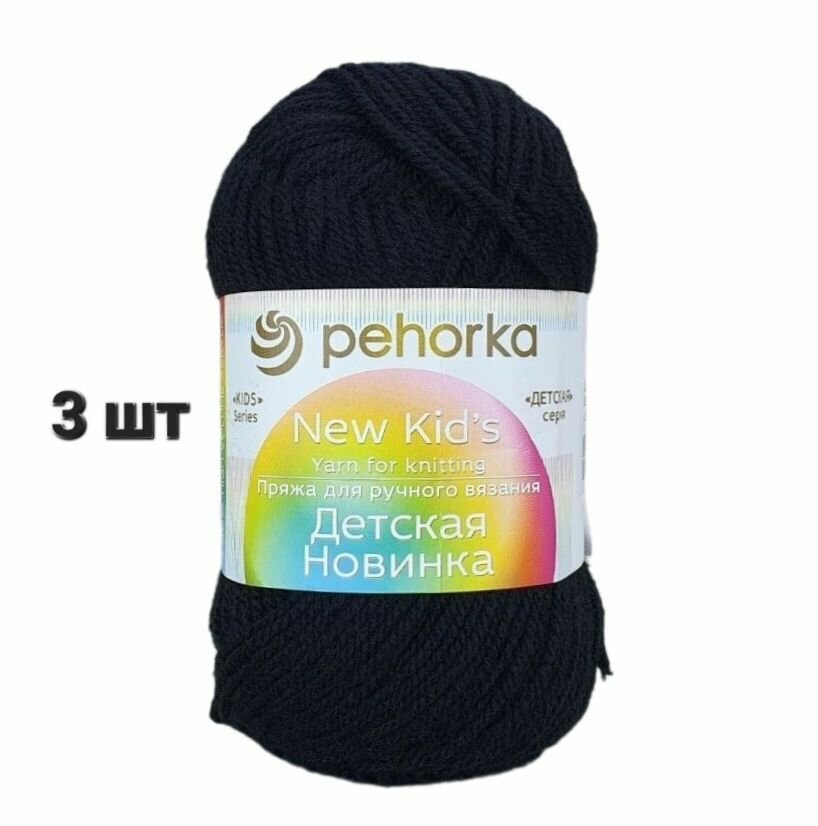 Купить Пряжа Пехорка Детская новинка черный (2), 100%высокообъемный акрил, 200м, 50г, 3шт