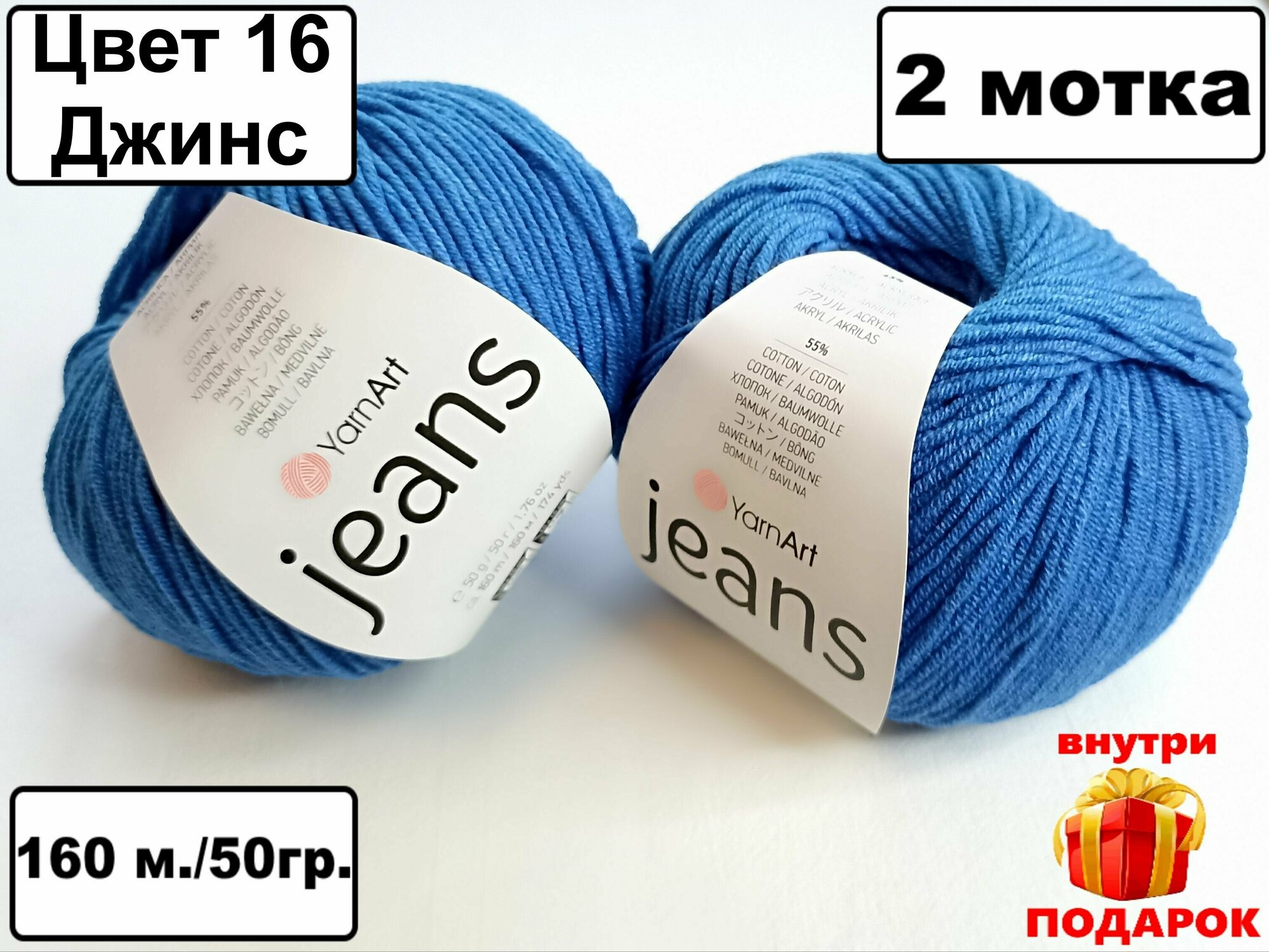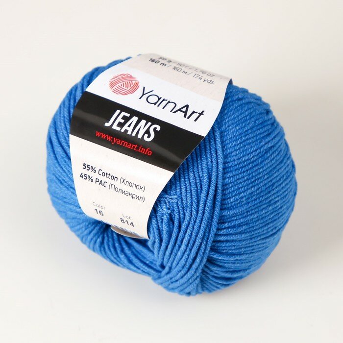СохранитьПряжа YarnArt Jeans- 1 шт, 16 светлый джинсовый, 160м/50г, 55% хлопок, 45% полиакрил /ЯрнАрт Джинс/ интересное: