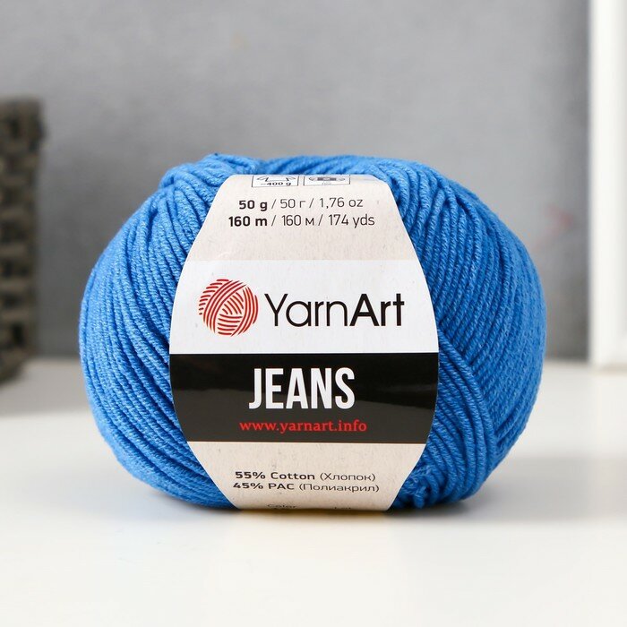 Пряжа YarnArt Jeans- 1 шт, 47 василек, 160м/50г, 55% хлопок, 45% полиакрил /ЯрнАрт Джинс/