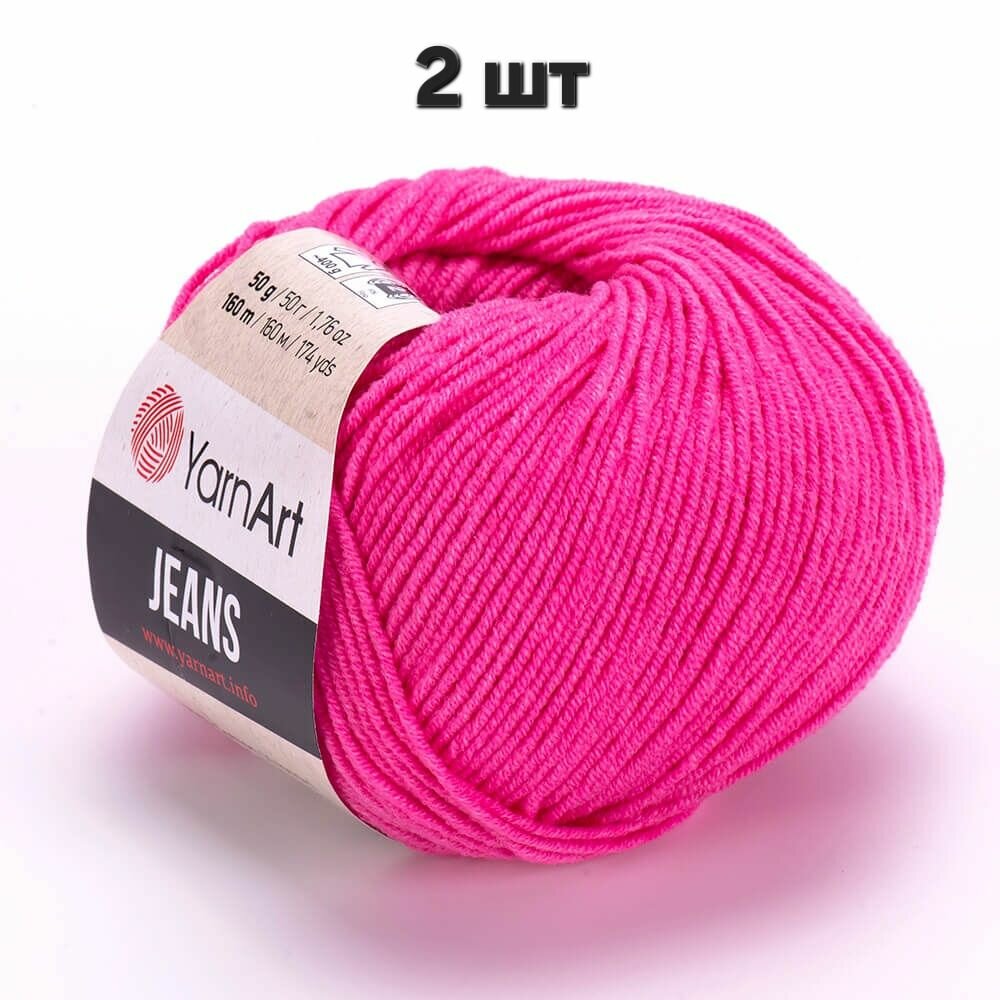 Купить Пряжа YarnArt Jeans Ярнарт джинс Ярко-розовый (42) 2 мотка 50 г/160 м (45% акрил 55 хлопок)