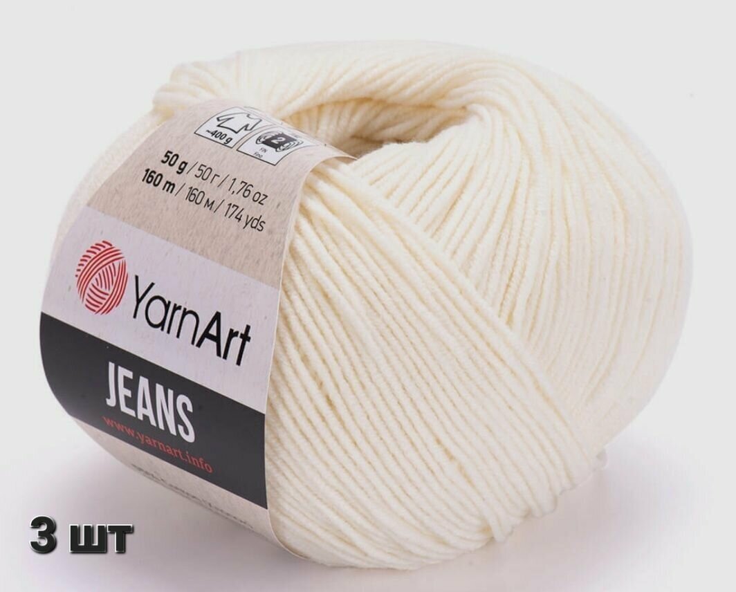 Купить Пряжа YarnArt Jeans экрю (03), 55%хлопок/45%акрил, 160м, 50г, 3шт