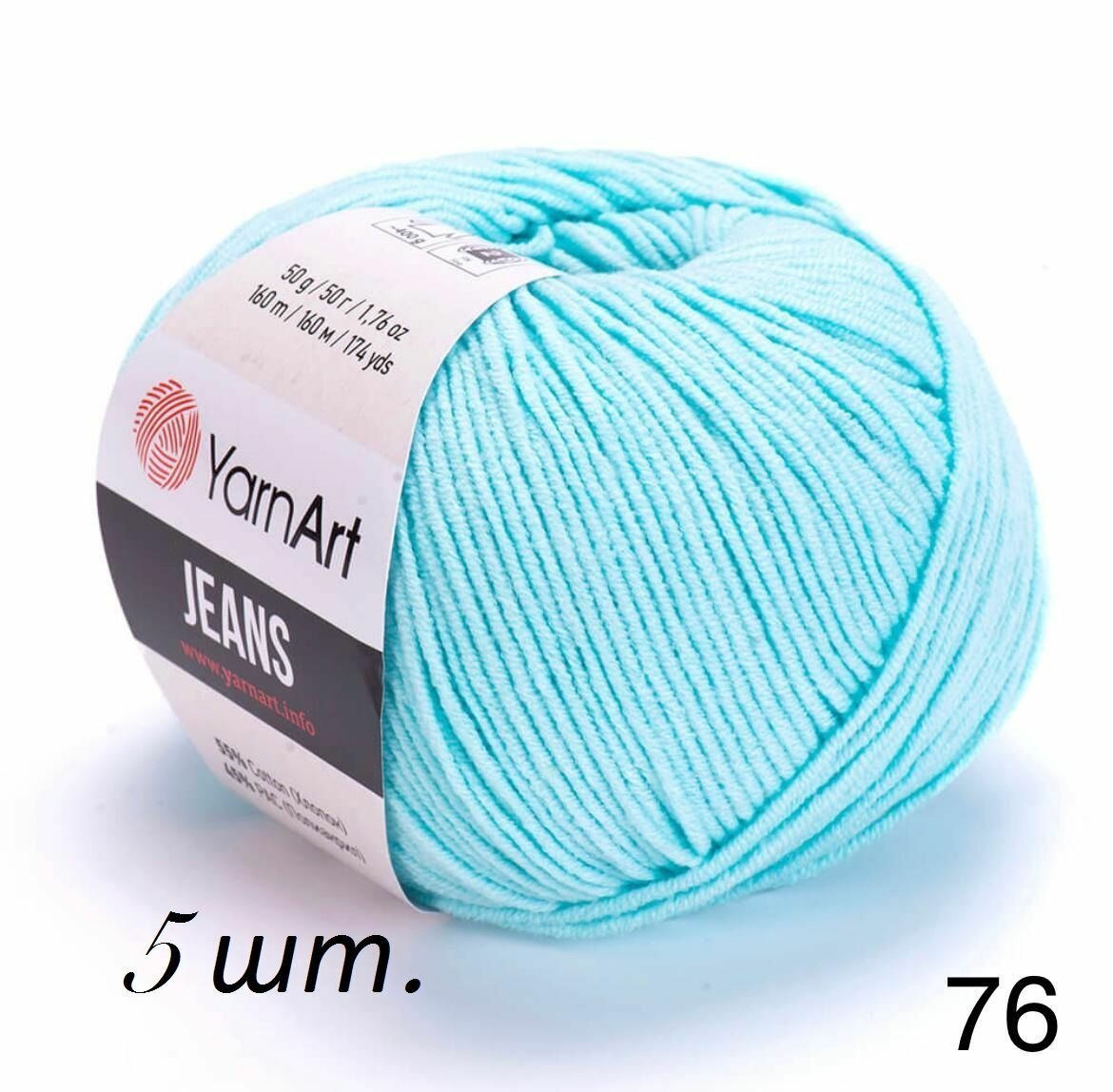 Купить Пряжа YarnArt Jeans светло-бирюзовый (76), 55%хлопок/45%акрил, 160м, 50г, 5шт