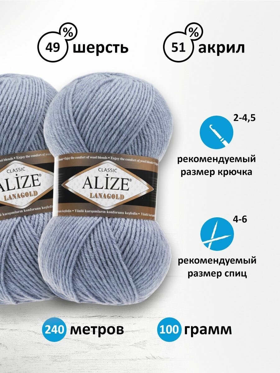 Пряжа для вязания ALIZE 'Lanagold', 100г, 240м (49% шерсть, 51% акрил) (221 светло-джинсовый), 5 мотков