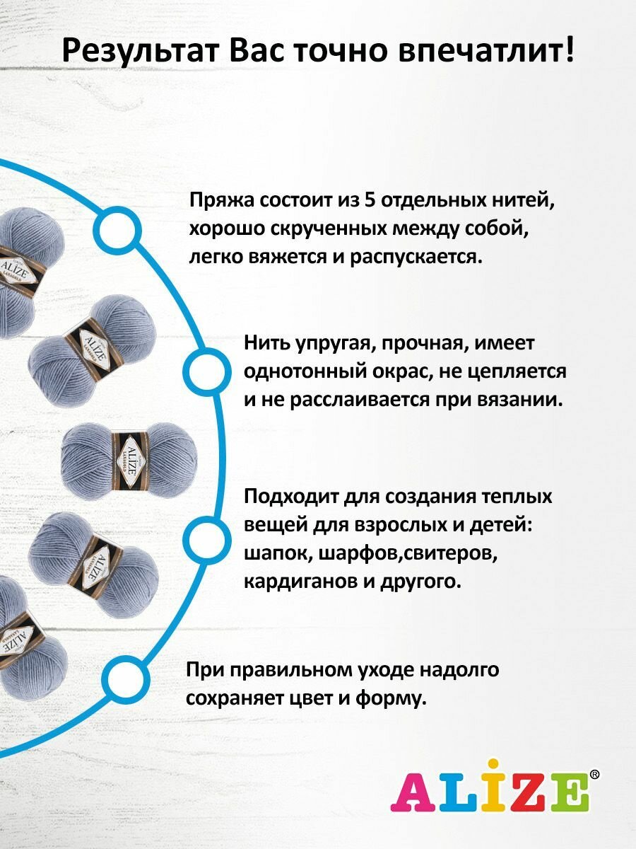 Пряжа Alize Lanagold | Турция | 5шт упаковка | Акрил: 51%, Шерсть: 49%