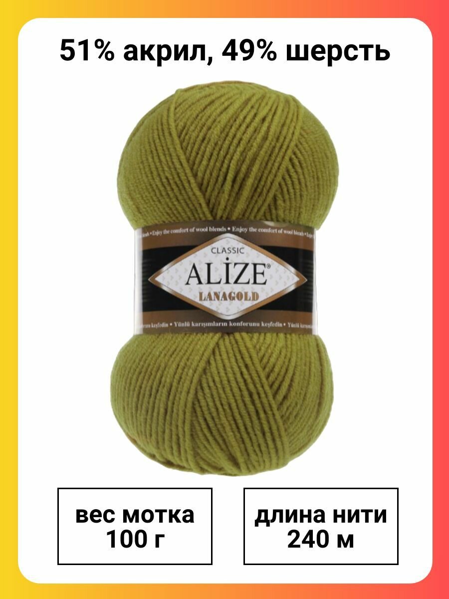 СохранитьПряжа ALIZE LANAGOLD, оливковый - 758, 49% шерсть, 51% акрил, 5 мотков, 100 г., 240 м. интересное: