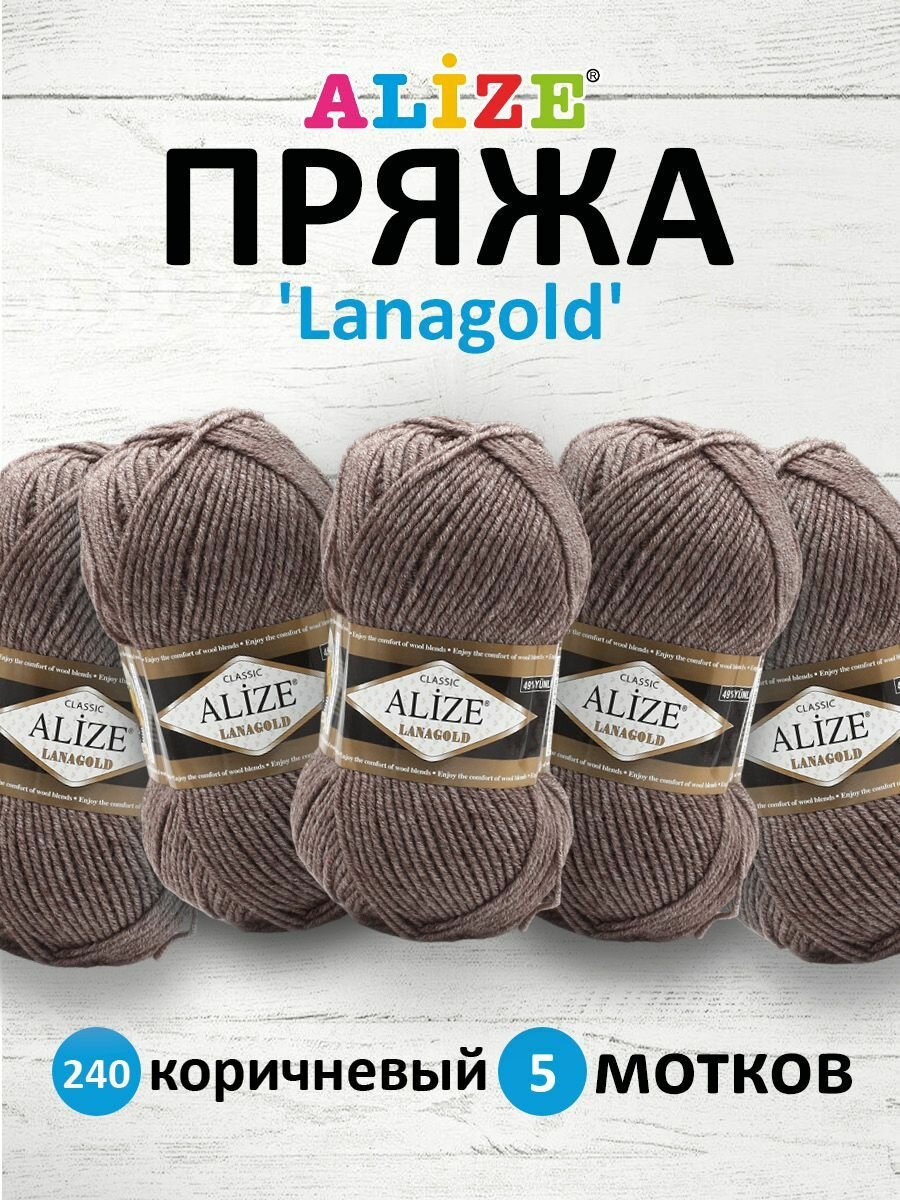 Купить Пряжа для вязания Alize Lanagold Classic 240 коричневый меланж, 100 г, 240 м, 5 штук