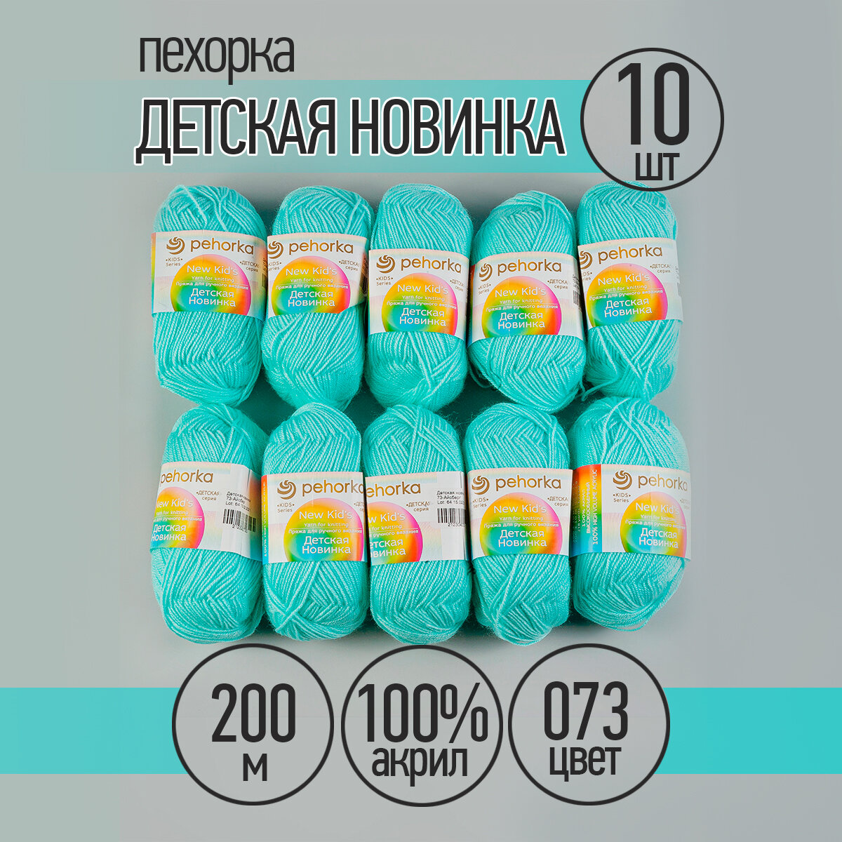 Пряжа для вязания Пехорка 'Детская новинка' 50г, 200м (100% акрил) (73 айсберг), 10 мотков