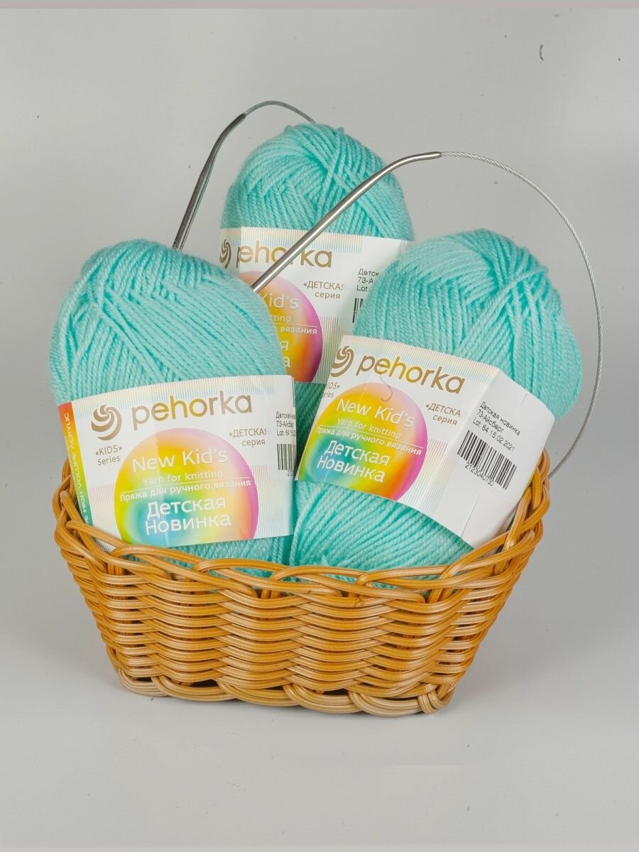 Пряжа Пехорка Детская новинка 5 мотков, цвет лагуна 591, состав 100% акрил, вес 50г, длина 200м
