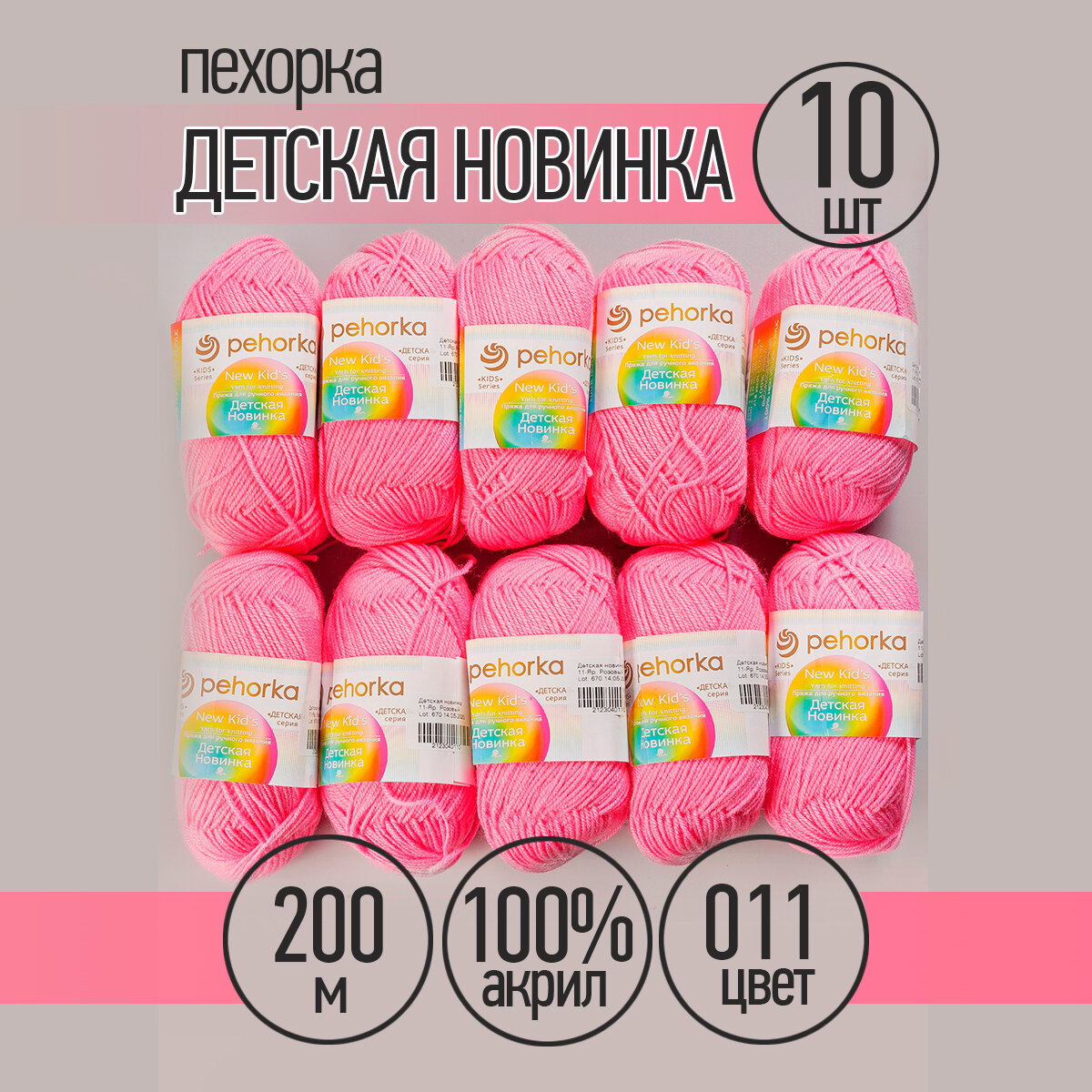 СохранитьПряжа для вязания Пехорка 'Детская новинка', 50г, 200м (100% акрил) (11 ярко-розовый), 10 мотков интересное:
