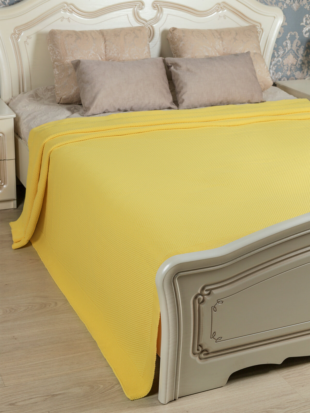Плед вязаный, Warm Whiff, желтый, 180х220, хлопок, покрывало для взрослого, дачи, спальни, кровати, однотонное одеяло, в подарок, мягкий