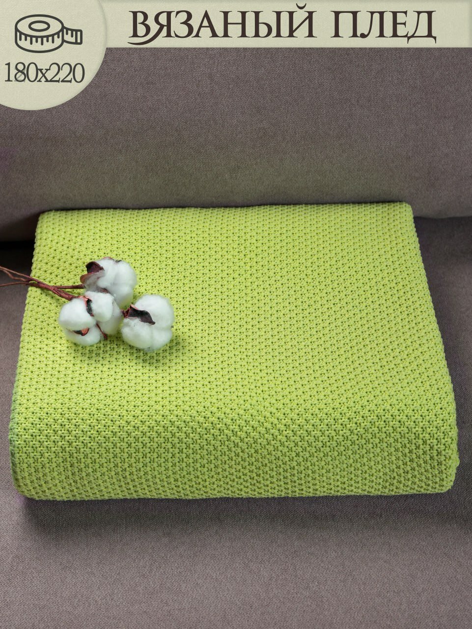 Плед 180х220, вязаный, Warm Whiff, зеленый, хлопок 100%, покрывало на кровать, на диван, на кресло, большой, тонкий, в подарочной коробке