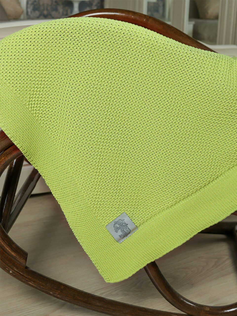 Плед вязаный, Warm Whiff, R-24, светло-зеленый, 120х220, хлопок, покрывало для подростка, сна, дивана, на кресло, большой, тонкий, натуральный