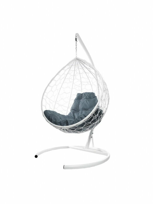 Подвесное кресло капля ротанг белое (без стойки), серая подушка