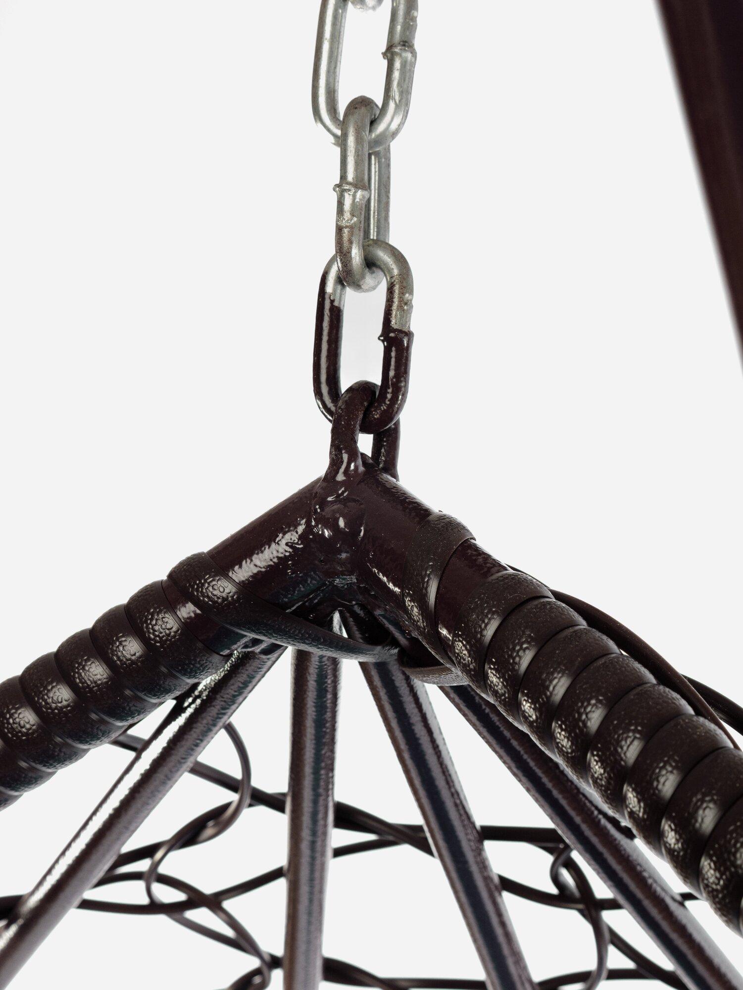 Подвесное кресло капля с ротангом чёрное, коричневая