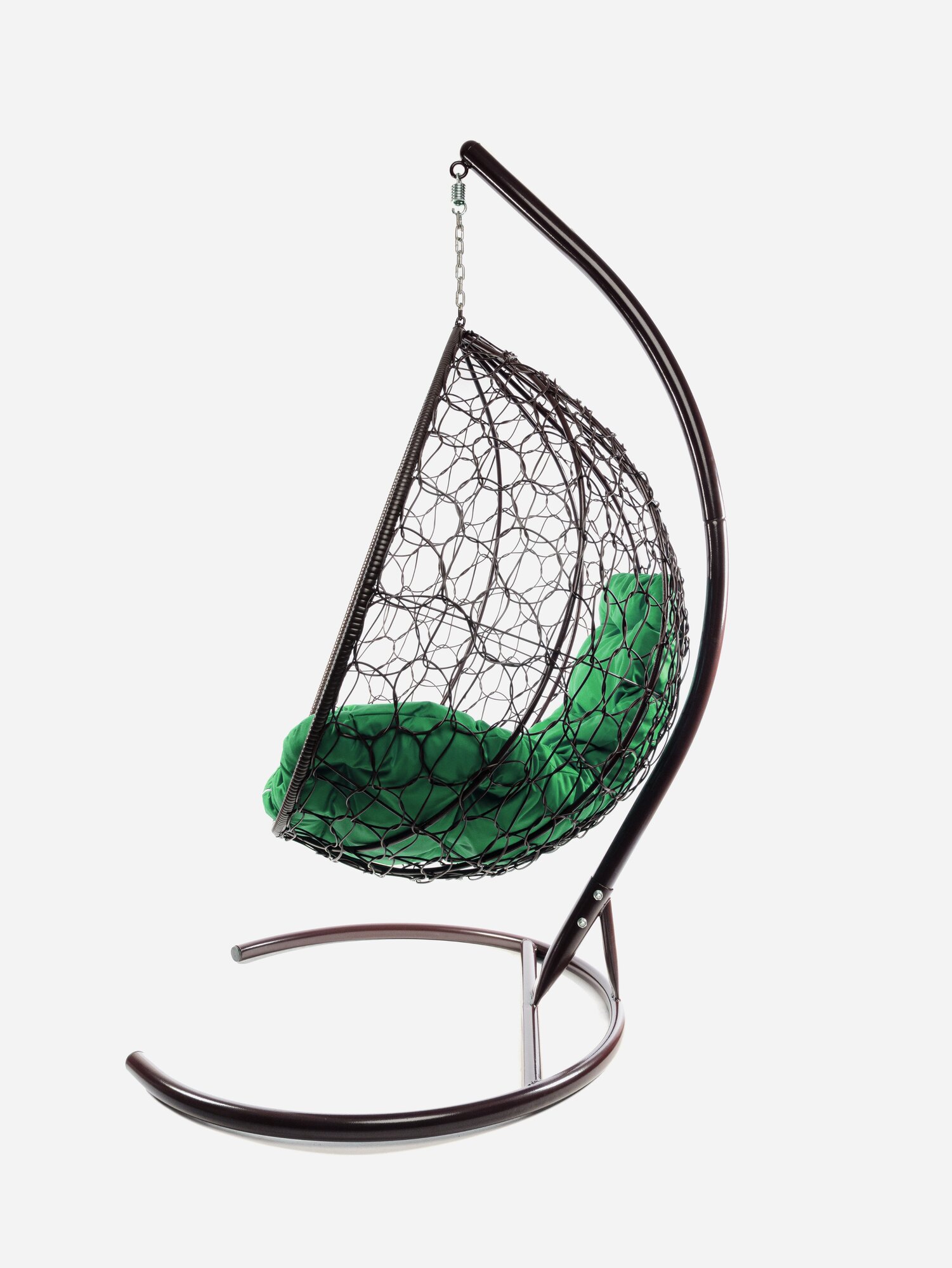 Подвесное кресло капля ротанг коричневое (без стойки), зелёная подушка