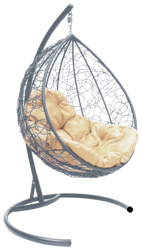 Подвесное кресло M-group капля с ротангом серое бежевая подушка