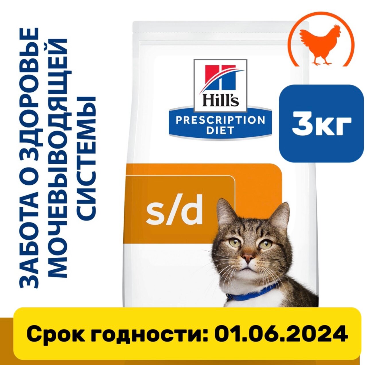 Купить Сухой диетический корм для кошек Hill's Prescription Diet s/d Urinary Care при профилактике мочекаменной болезни (мкб), с курицей, 3 кг