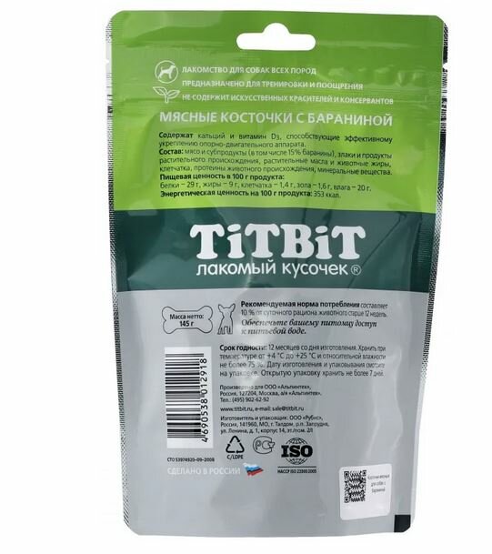 TiTBiT Лакомство из баранины Titbit "Косточки мясные" для собак, 145 г