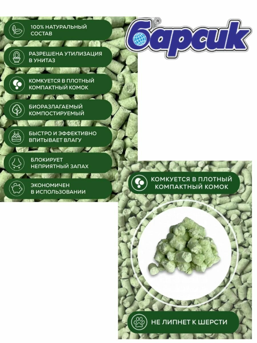 Натуральный комкующийся наполнитель для кошачьего туалета Барсик TOFU Зелёный Чай 15л