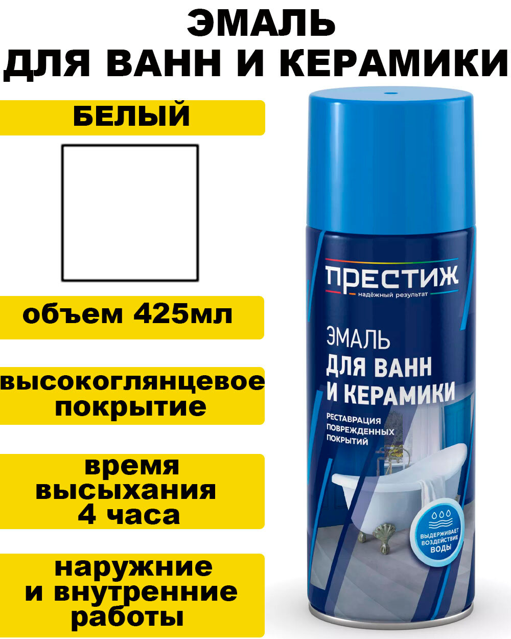 Купить Аэрозольная эмаль для ванн и керамики Престиж , высокоглянцевая, 425 мл, белая