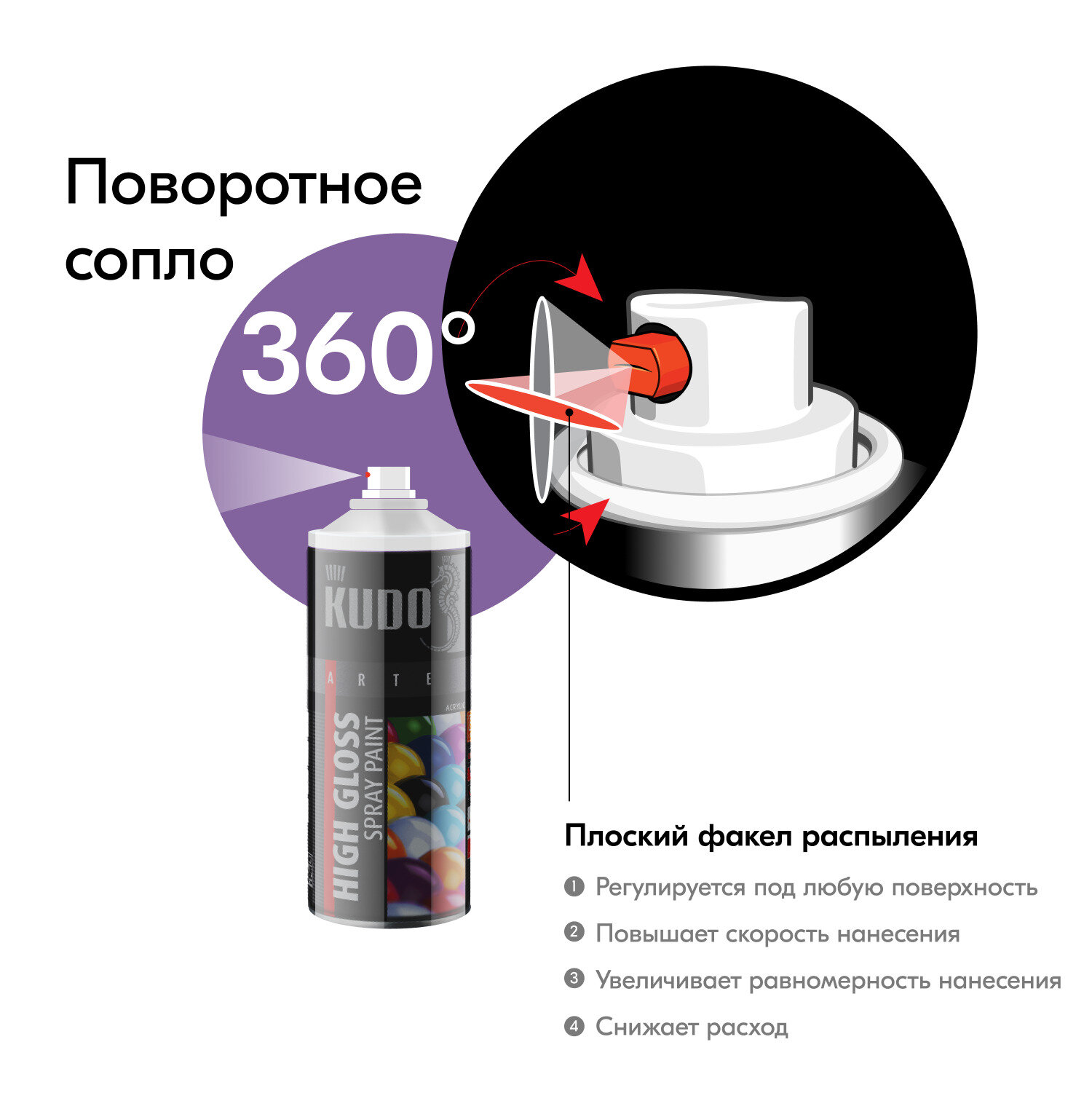 Аэрозольная акриловая краска Kudo KU-A4008, глянцевая, 520 мл, фиолетовая