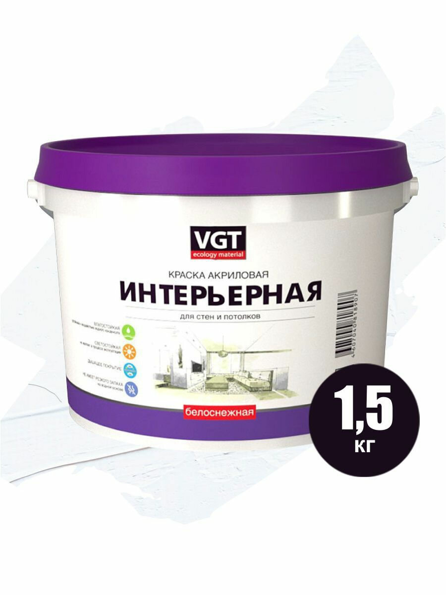 VGT / ВГТ ВД-АК-2180 Краска акриловая для стен белоснежная 1,5кг