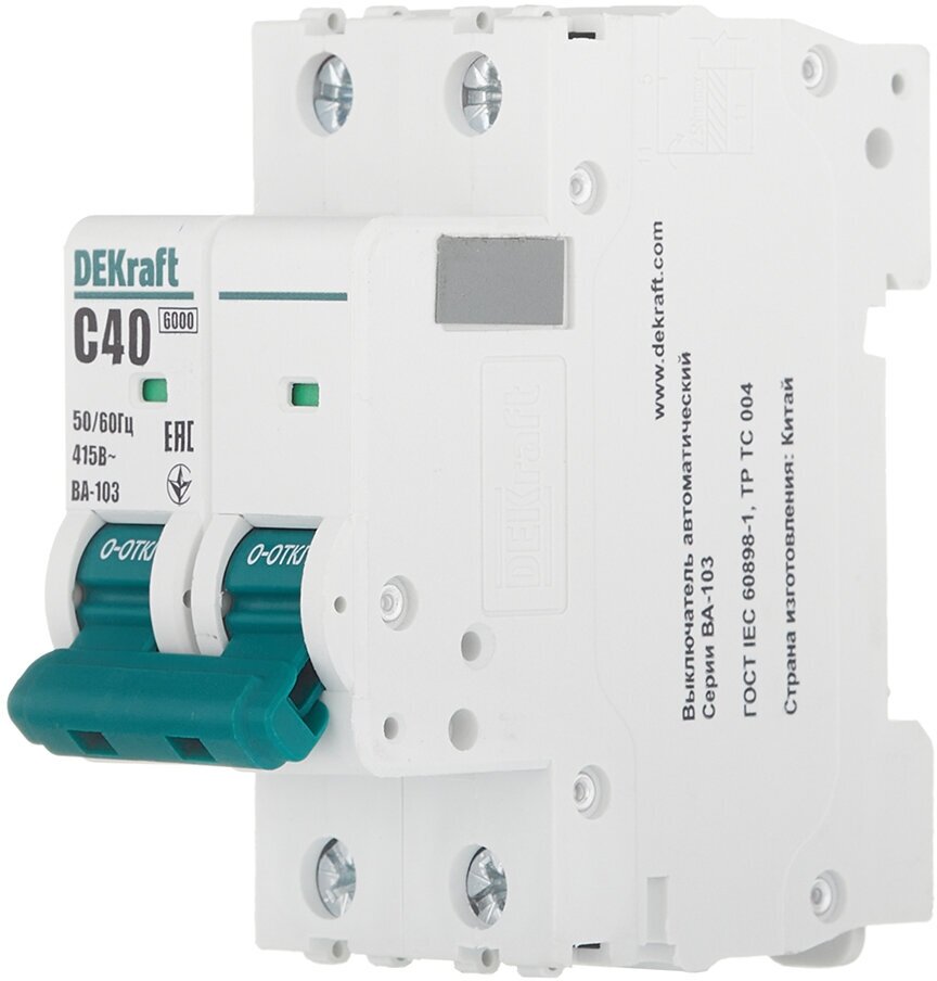 Купить DEKraft Автоматический выключатель 2Р 40А х-ка C ВА-103 6кА 12293DEK