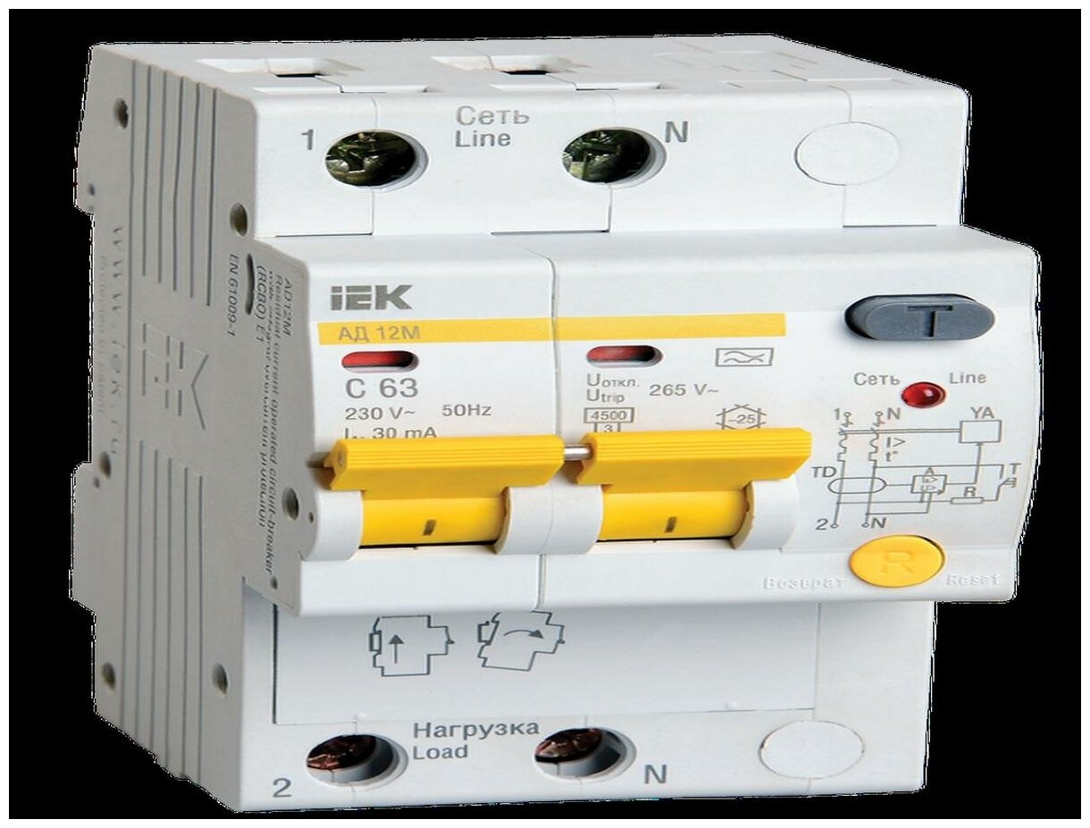Выключатель автоматический дифференциальный 2п 63А 30мА АД-12M MAD12-2-063-C-030 IEK