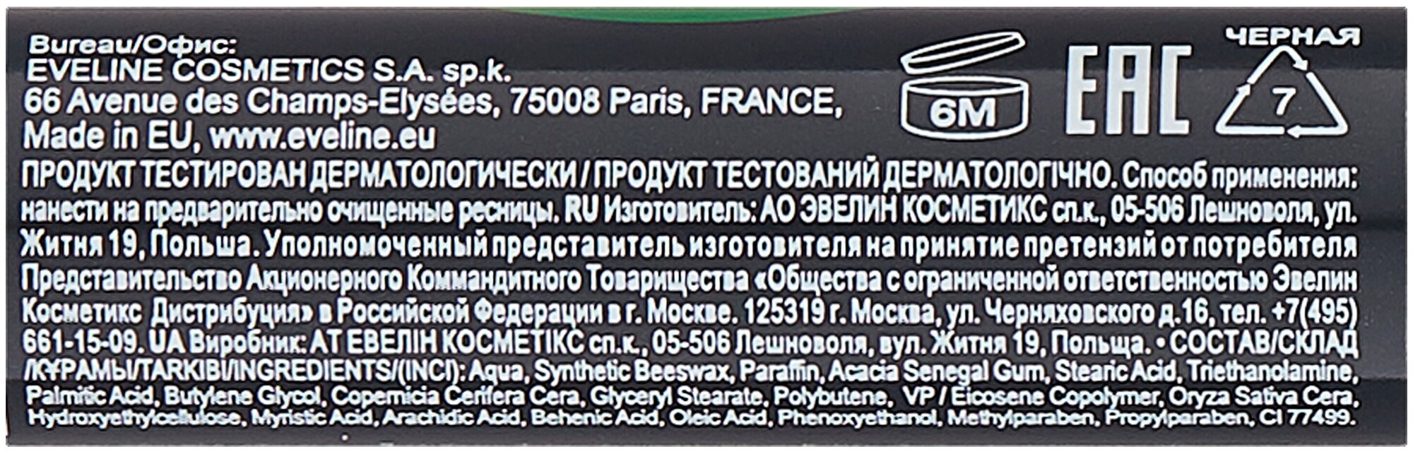 Eveline Тушь для ресниц "экстремальная длина и изгиб" (тон чёрный), 10 мл