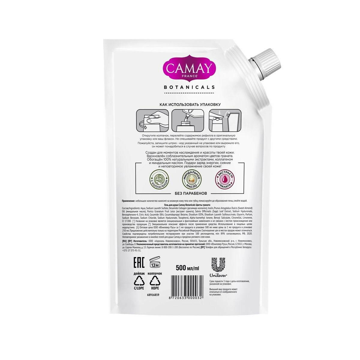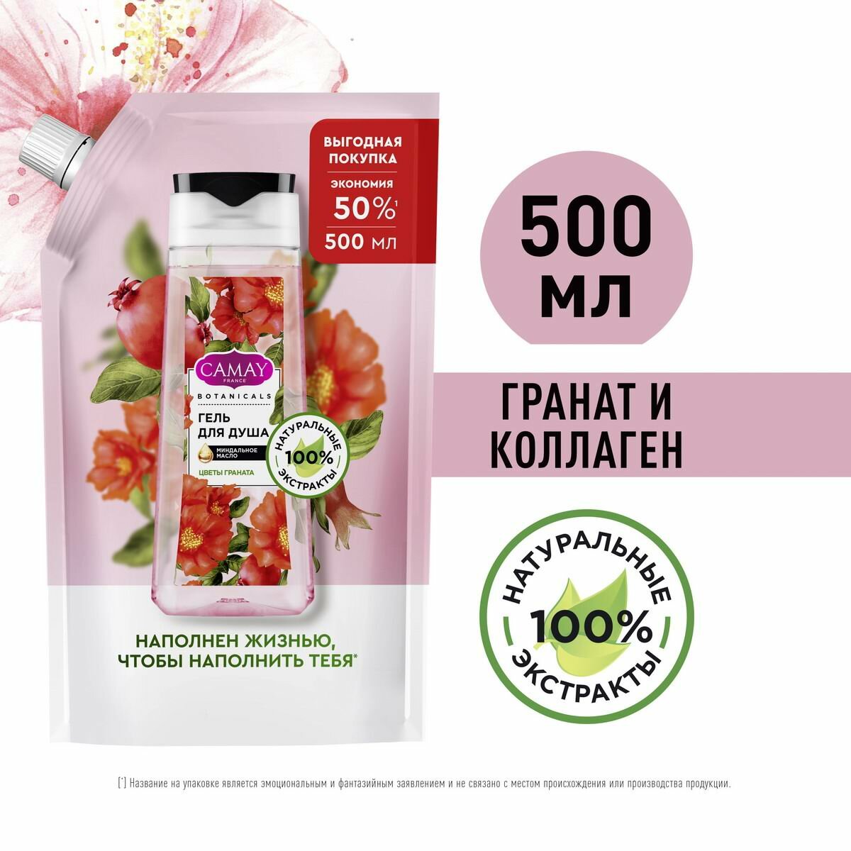 CAMAY BOTANICALS цветы граната гель для душа с коллагеном миндальным маслом на 100% натуральной основе 500 мл