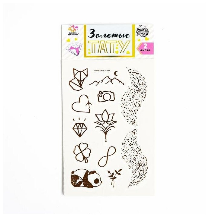 Школа талантов Татуировки-переводки, детские 10*15 (набор 2 листа) золото