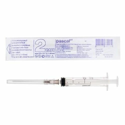 Шприц 3-х компонентный Pascal 2 мл с иглой 22G (0,7х40 мм) 1 шт