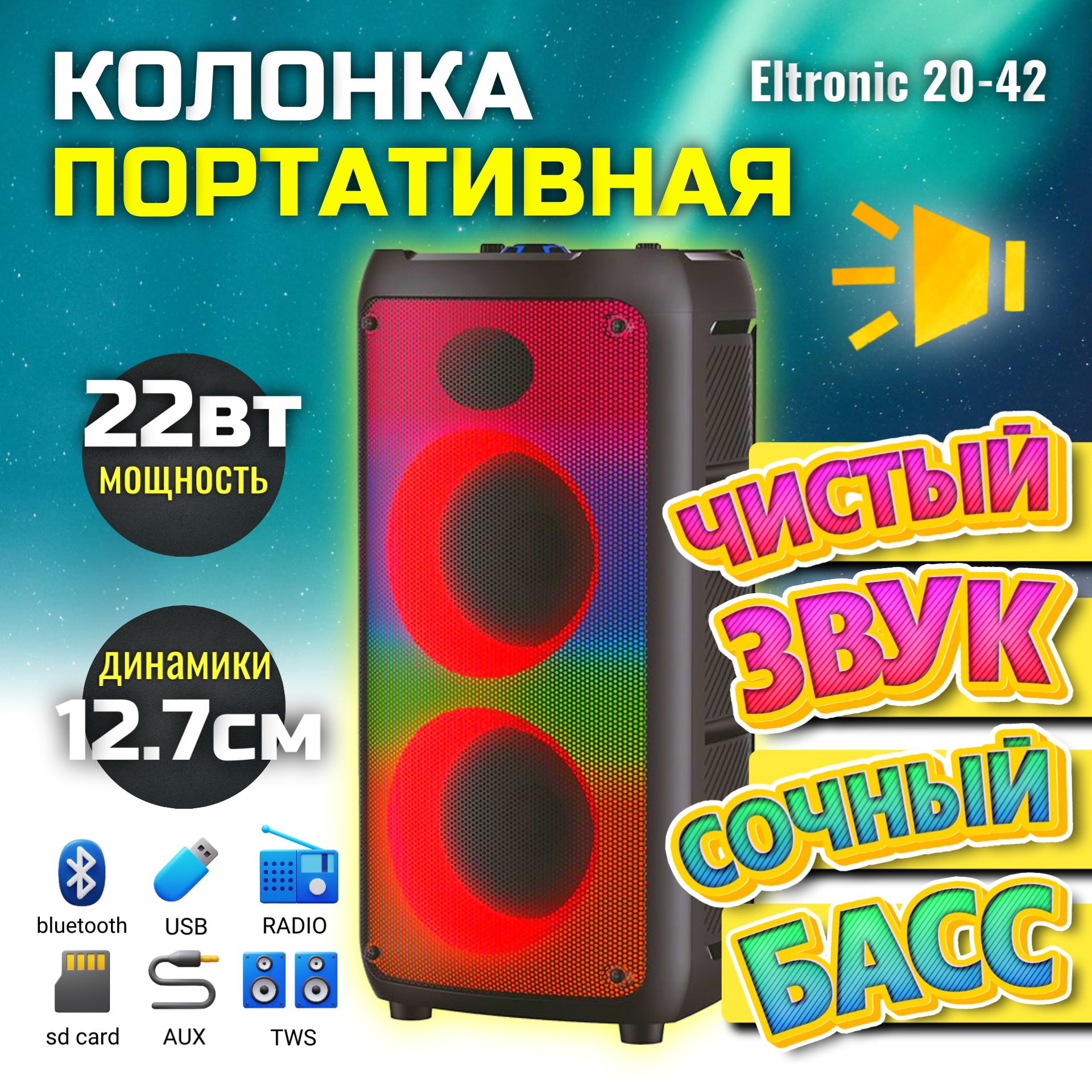 Колонка портативная ELTRONIC 20-42 FIRE BOX 220 с TWS
